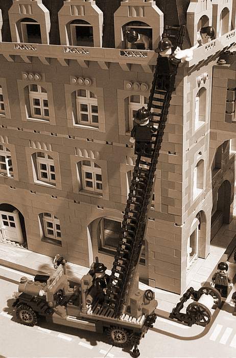 Schnell ist die Drehleiter in Stellung gebracht und der Angriffstrupp steigt hoch zu der Katze. Diese freut sich über die schnelle Rettung und lässt sich bereitwillig die Leiter hinuntertragen.